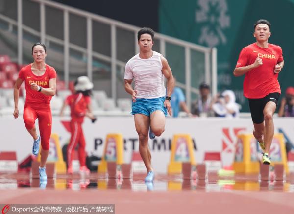 苏炳添的2018年:退役后本想过平淡生活 重返赛场后充满惊喜 02:36 光荣后的伤痛:突破十秒后他感到骨头都散了 大腿和腰伤病严重 退役运动员苏炳添夺冠背后的坚持 2018年08月27日10:17 体育专栏 我有话说 北京时间8月26日晚,在雅加达亚运会的男子百米飞人大战决赛打响。 Wangchuang@donews.com / qq 972310705 , 违法和不良信息举报电话: #苏炳添谈退役# 【谈退役#苏炳添称我想我真的还可以跑# 超越自我 全力奔跑赞】2015年国际田联钻石联赛尤金站,最外侧第一道的苏炳添跑出了9秒99的成绩。 随后的北京世锦赛,苏炳添在百米决赛中又一次跑出了9秒99。从此苏炳添的名字开始家喻户晓,但是随后的两年苏炳添却神奇不在了。